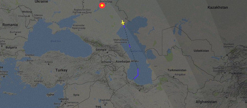 Đường bay của biên đội Su-35S và Tu-154B-2. Ảnh: Flight Radar 24.