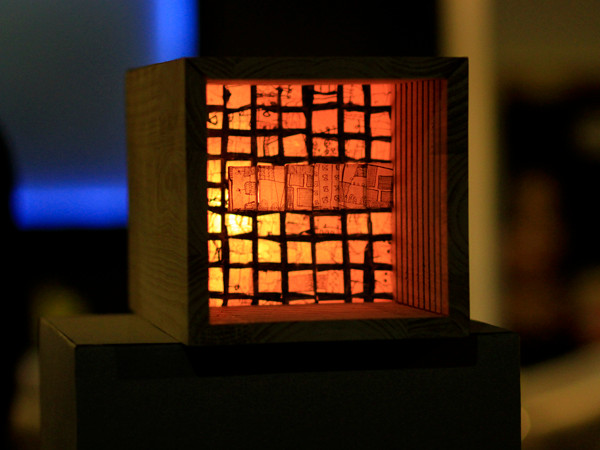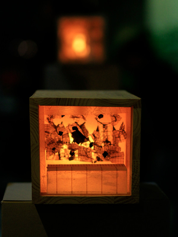 | Các tác phẩm đặt trong những chiếc hộp nhỏ. Mỗi chiếc hộp là một không gian thể hiện một góc cạnh cuộc sống. |