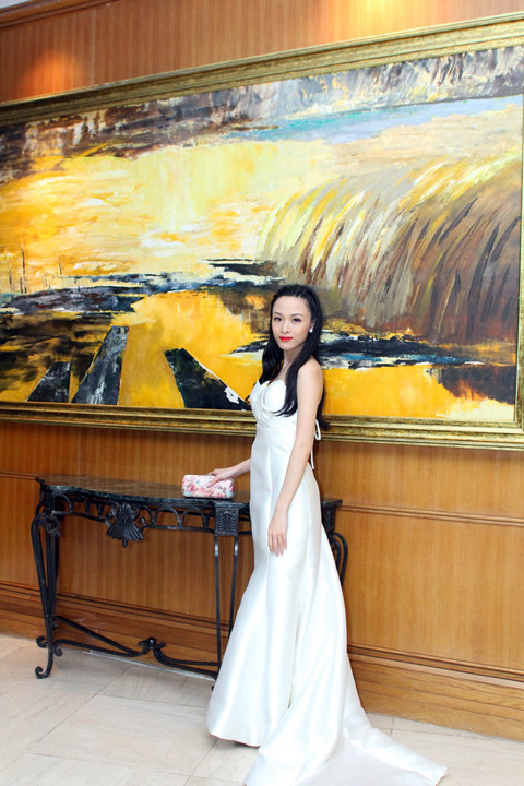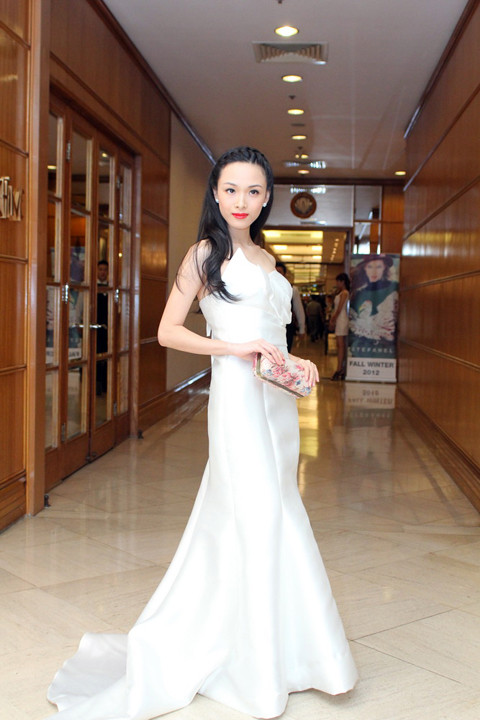 | Phương Nga chọn đầm trắng muốt dịu dàng để làm MC cho một event. |