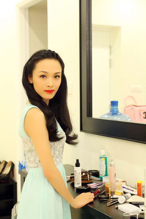 | Bộ đầm đuôi cá đã khéo léo tôn được vóc dáng nhỏ bé của cô. |