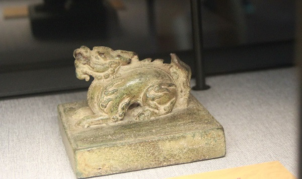 Tượng Kỳ Lân trên ấn “Đề thông tướng quân” bằng đồng thời Lê sơ, niên hiệu Hồng thuận thứ 6 (1515) Ảnh: Toan Toan