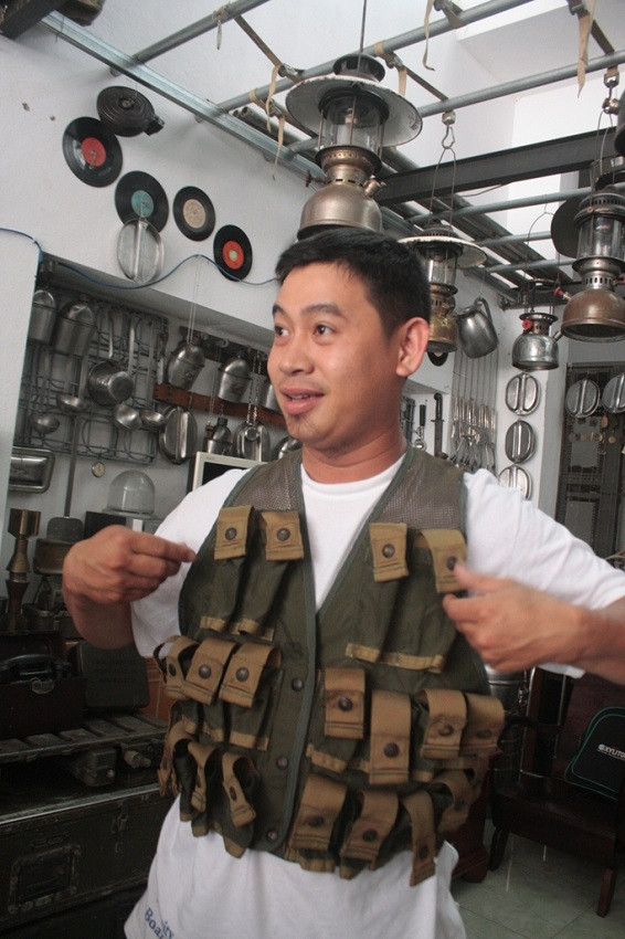 Một chiếc áo trang bị cho lính Mỹ mà anh Hiền sưu tầm được. Đây là một trong những kỷ vật anh quý nhất. Anh Hiền cho biết để có được bộ sưu tập anh phải lùng sục khắp nơi từ các kho phế liệu đến nhà dân để thu mua, lượm lặt. Với anh sưu tầm đồ cổ và vũ khí, quân tranh là một niềm vui.