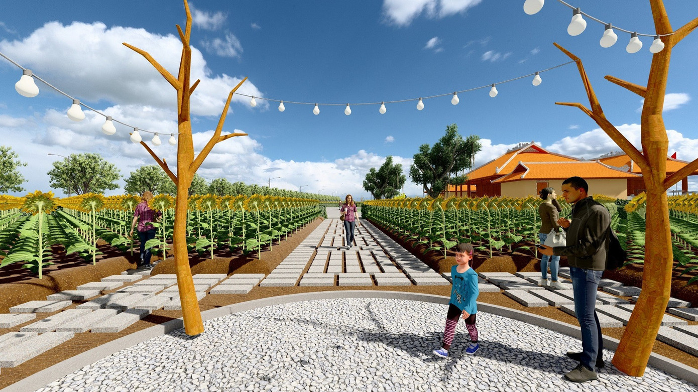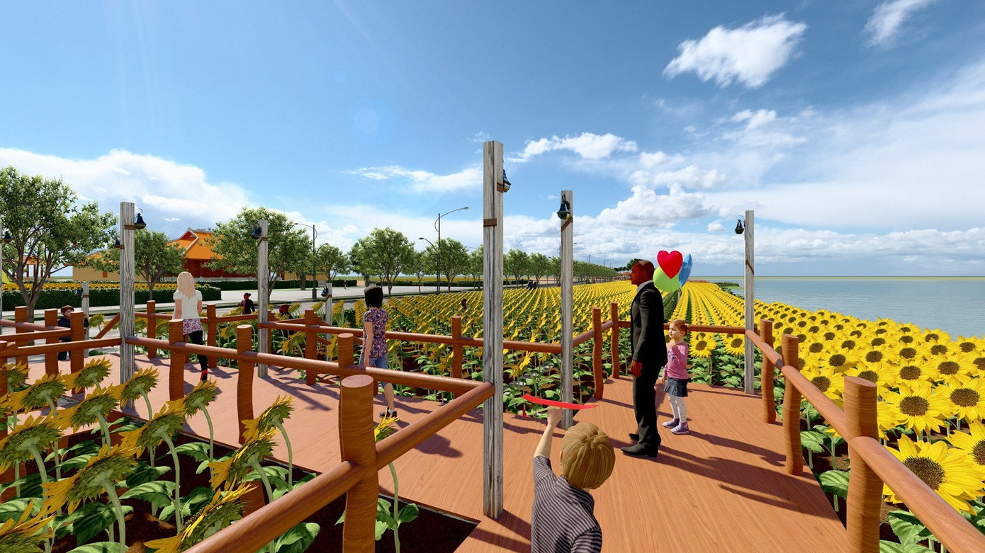 Trong 14 hạng mục, cánh đồng hoa hướng dương có diện tích rộng 5.000 - 6.000m2. Vị trí vườn hoa nằm ở phía sau đình thần An Khánh hướng bờ sông Sài Gòn.