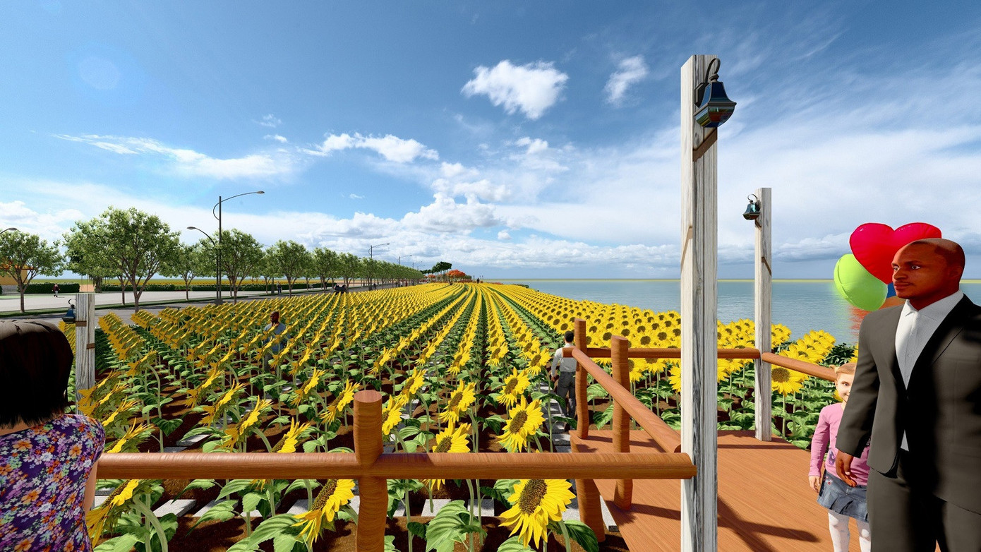 Theo kế hoạch cải tạo, chỉnh trang không gian bờ Thủ Thiêm của UBND TP Thủ Đức (TP.HCM), đoạn ven sông Sài Gòn từ cầu Ba Son đến nóc hầm Thủ Thiêm sẽ có cánh đồng hoa hướng dương rộng từ 5.000-6.000m2.