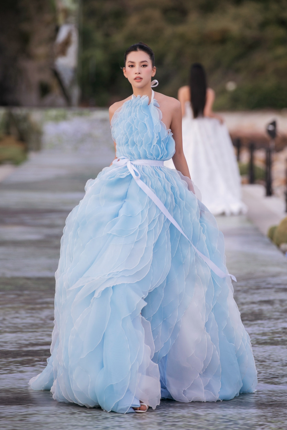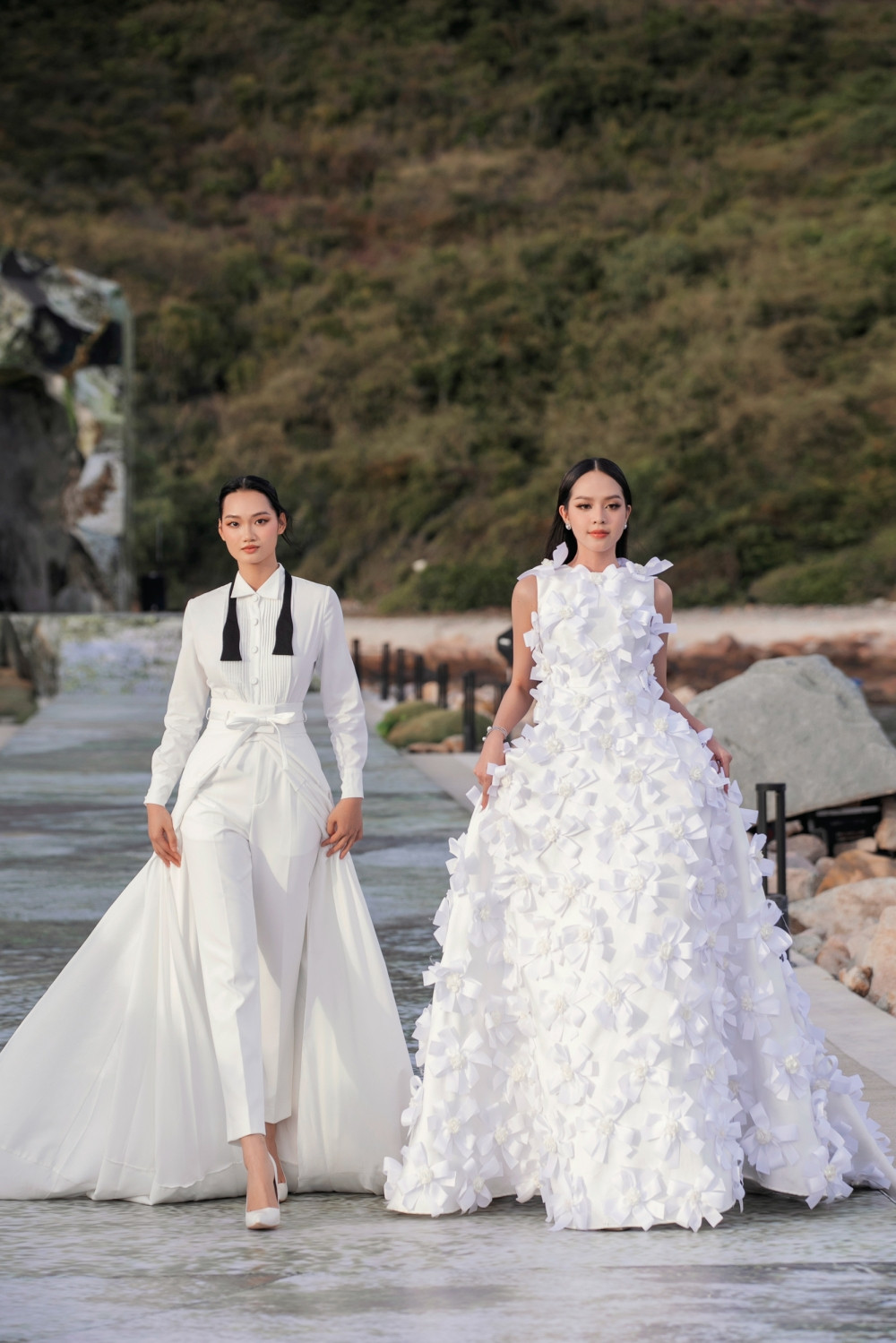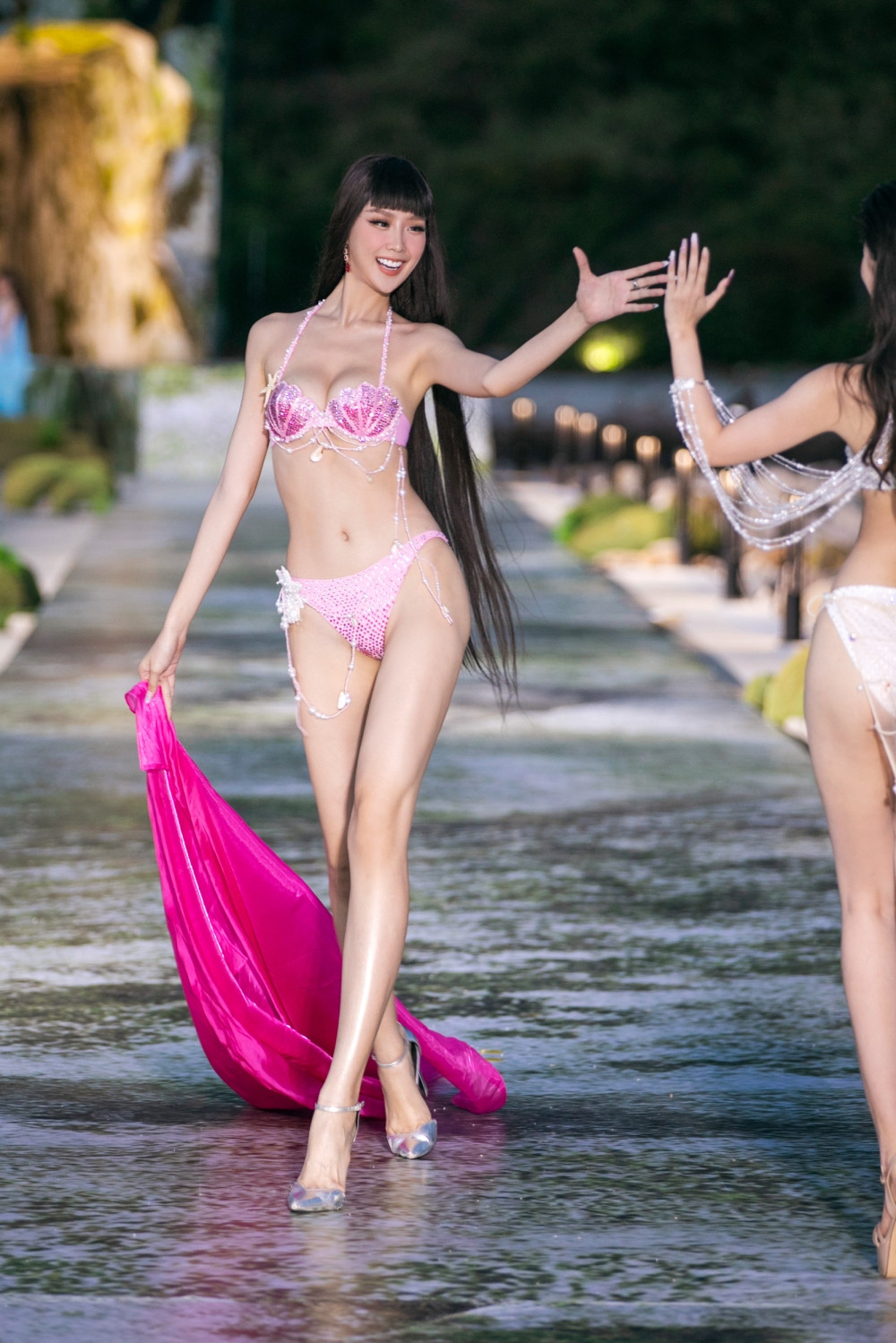 Hoa hậu Thanh Thủy catwalk cùng siêu mẫu Quỳnh Anh. Hoa hậu Việt Nam 2022 ngày càng thăng hạng về nhan sắc cũng như kỹ năng trình diễn.