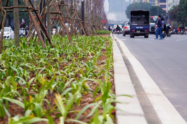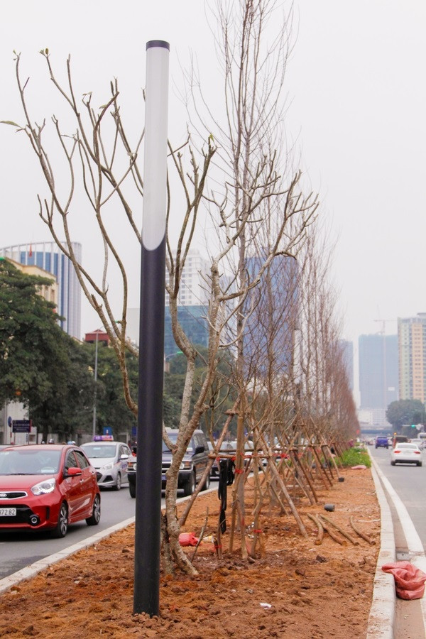 Cây phong lá đỏ vẫn được lựa chọn làm chủ đạo trên dải phân cách mới của "đường đẹp nhất Việt Nam".