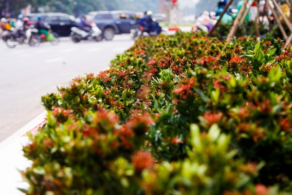 Hoa bông trang nở rực rỡ với sắc đỏ trên đường Nguyễn Chí Thanh khiến người dân đi qua không khỏi ngước nhìn.