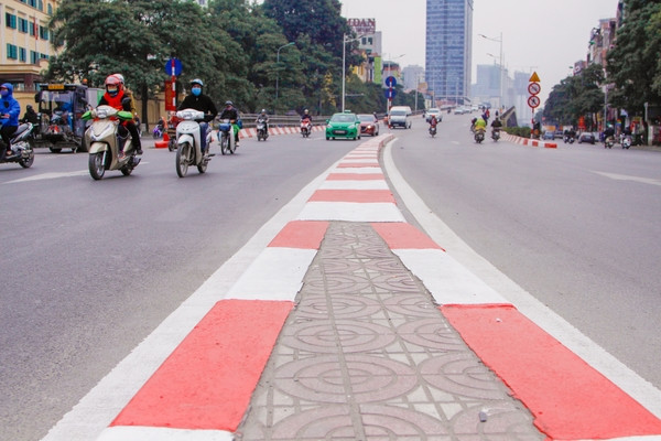 Dải phân cách cũng được sơn mới lại với 2 màu trắng, đỏ.