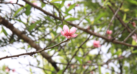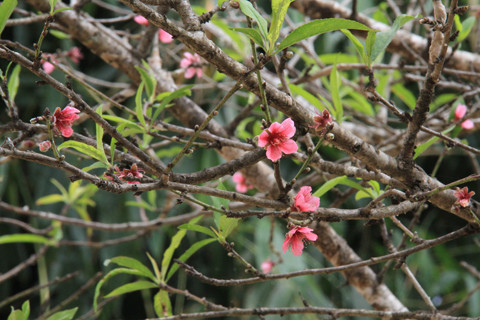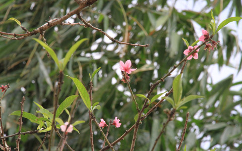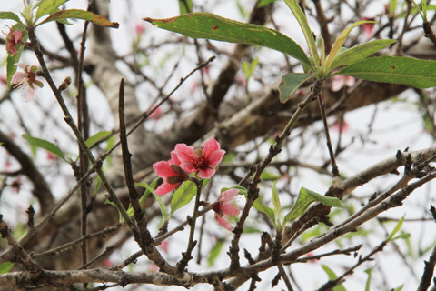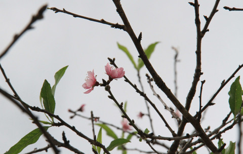 | Những chùm hoa đào đã nở rộ, dù còn mấy tháng nữa mới đến Tết. |