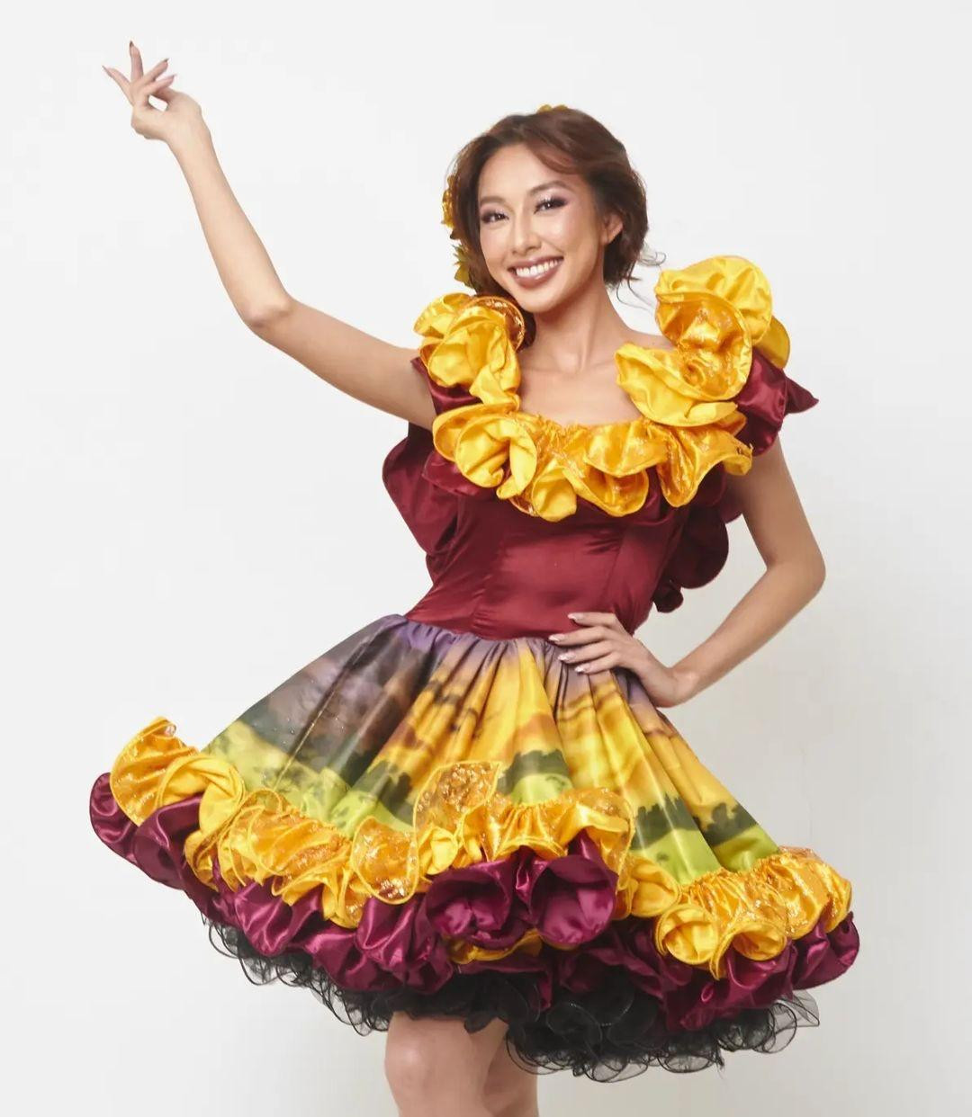 Hoa hậu Thuỳ Tiên mặc 3 bộ trang phục truyền thống của Colombia có tên lần lượt là San Juanero, Llanero và Cumbia với màu sắc vô cùng sặc sỡ. Colombia có khá nhiều kiểu trang phục dân tộc, nhưng đây là 3 trong số những mẫu trang phục phổ biến nhất.