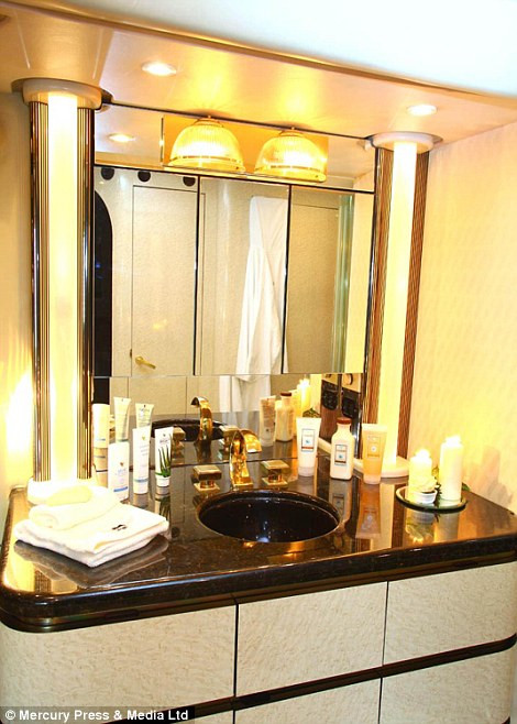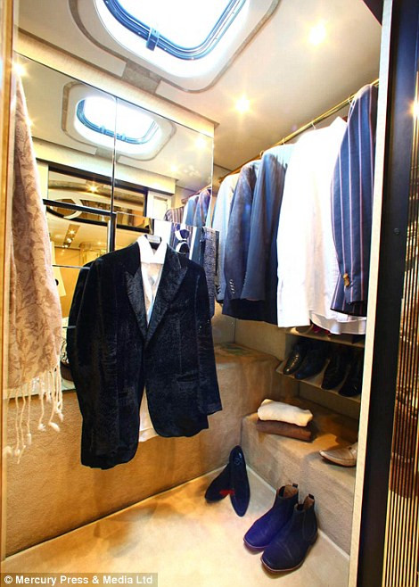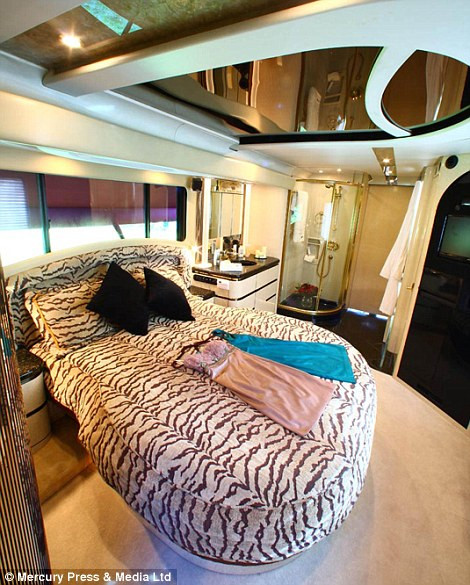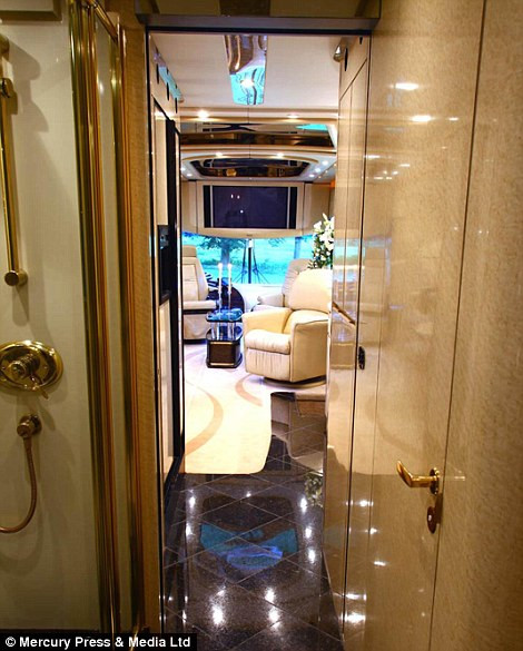 Chiếc xe đầy đủ tiện nghi với ti vi plasma 42 inch, phòng bếp được thiết kế theo phong cách riêng của Mỹ, tủ quần áo, nhà tắm riêng.