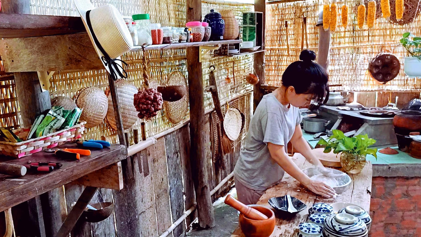 Khu vườn dừa của gia đình Lê Phạm Quế Phương ở xã Thuận Điền, huyện Giồng Trôm. Rộng khoảng 1 hecta. Chị lớn lên ở An Giang, lập nghiệp tại Sài Gòn với công việc thiết kế, chỉnh sửa ảnh cưới. Đến một thời điểm, Phương nhận thấy, cuộc sống của mình cần có chút thay đổi.