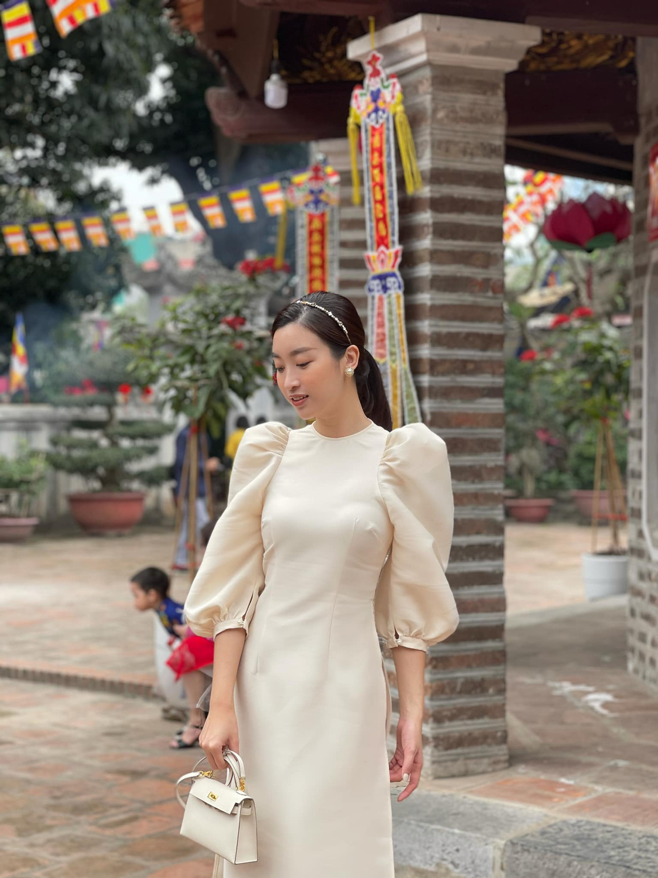 Người đẹp cũng không bỏ lỡ cơ hội mặc áo dài cho chính mình thiết kế khi đi lễ chùa vào ngày đầu năm.