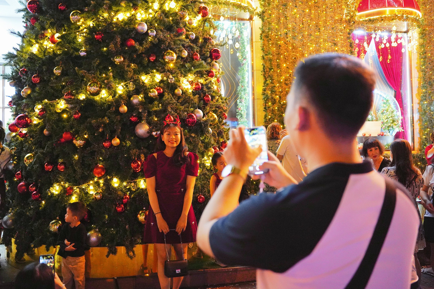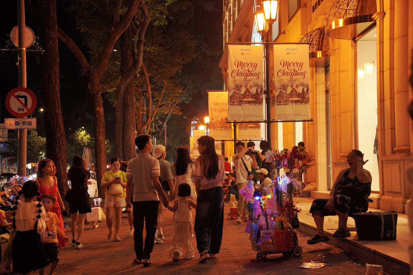 Mặc dù chưa đến Giáng sinh nhưng những ngày này, không khí lễ hội đã tràn ngập khắp nơi ở TP. HCM, từ đường phố, công viên tới các trung tâm thương mại, quán cà phê... đều bừng lên sắc màu Giáng sinh. Nổi bật nhất là khu Trung tâm thương mại Diamond Plaza, vào buổi tối, nhiều đồ vật trang trí hiện lên lung linh, rực rỡ và bắt mắt, với cây thông, tuần lộc, hoa tuyết, ông già Noel... Nơi đây thu hút nhiều bạn trẻ tới tham quan, chụp ảnh check-in, vui chơi...