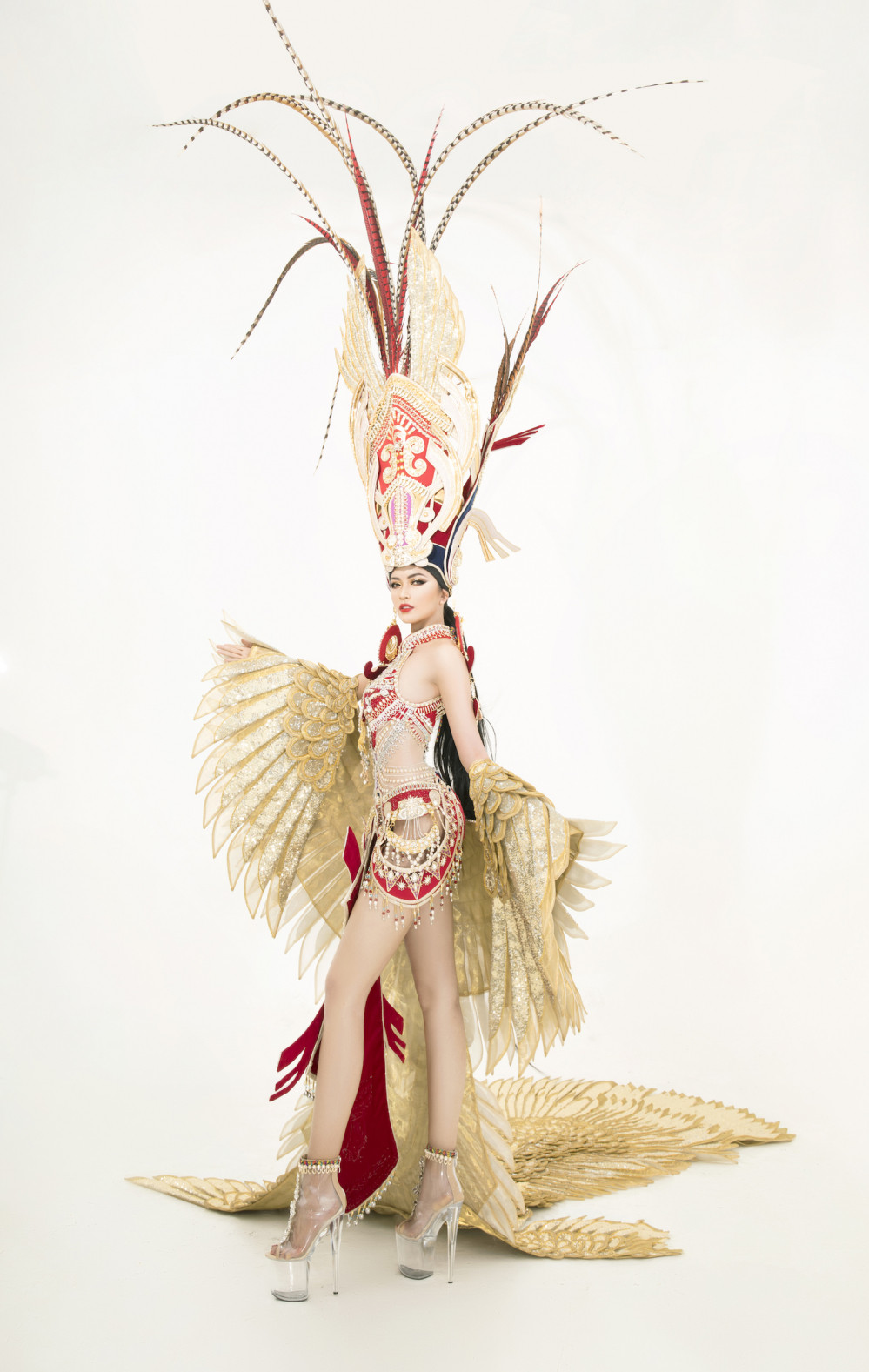 Tham dự Hoa hậu Siêu quốc gia 2019, Ngọc Châu mang tới bộ trang phục dân tộc 'Lạc vũ'. Ngay khi những hình ảnh trên được công bố, đông đảo các fan sắc đẹp đã bày tỏ cảm xúc vỡ oà, thích thú. Chia sẻ về Lạc vũ, NTK Lê Long Dũng cho biết ý tưởng của bộ trang phục lần này được lấy cảm hứng từ bức chạm vũ nữ Trà Kiệu cùng hình ảnh chim Lạc.