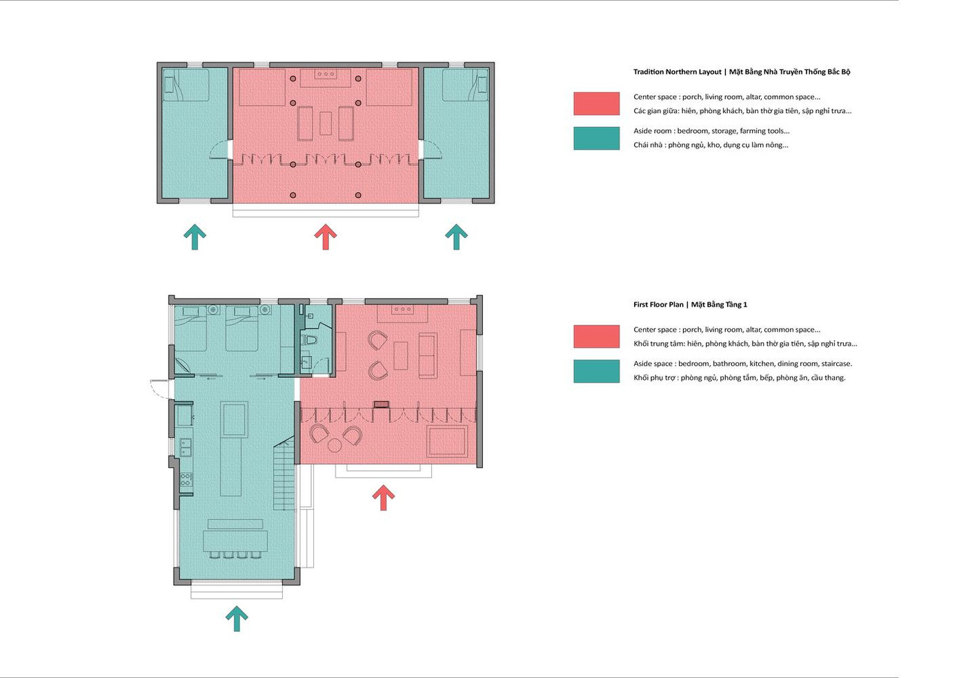 | Hầu hết người dân ở nông thôn đều phải gieo trồng, thu hoạch và phơi lúa vì vậy sân đa năng rộng là một đặc điểm không thể thiếu đối với những ngôi nhà ở nông thôn. Tuy nhiên, KTS đã chuyển sân phơi lúa thành sân chơi cho lũ trẻ, hay nơi tụ tập ăn mừng, luộc bánh chưng trong những ngày Tết. Đây là không gian gắn kết con người với thiên nhiên, gia đình với làng xã, cộng đồng địa phương. |