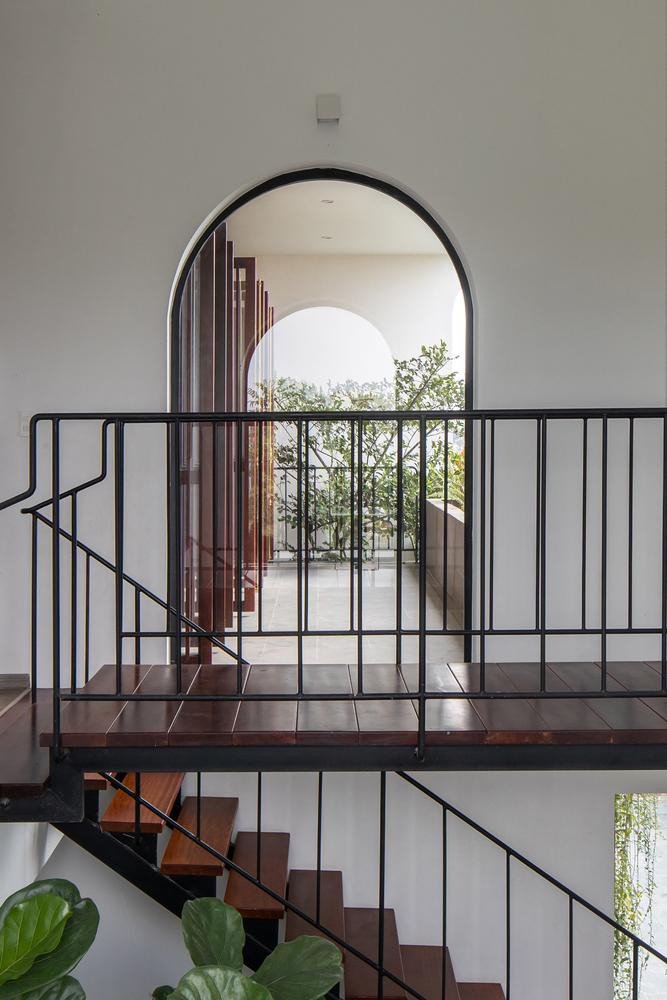 | Cửa có ray gỗ dọc giúp điều hòa ánh sáng và giảm bớt ánh nắng vào phòng khách. Hệ thống cửa đóng mở dễ dàng thay đổi trạng thái, kết nối dễ dàng hơn với hiên nhà và tạo mảng vật liệu chắc chắn cho mặt tiền chính. |