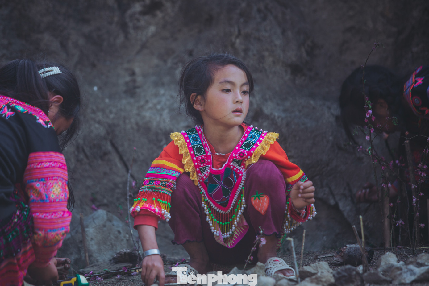 | Những em bé gái rực rỡ trong trang phục truyền thống của dân tộc Mông. |