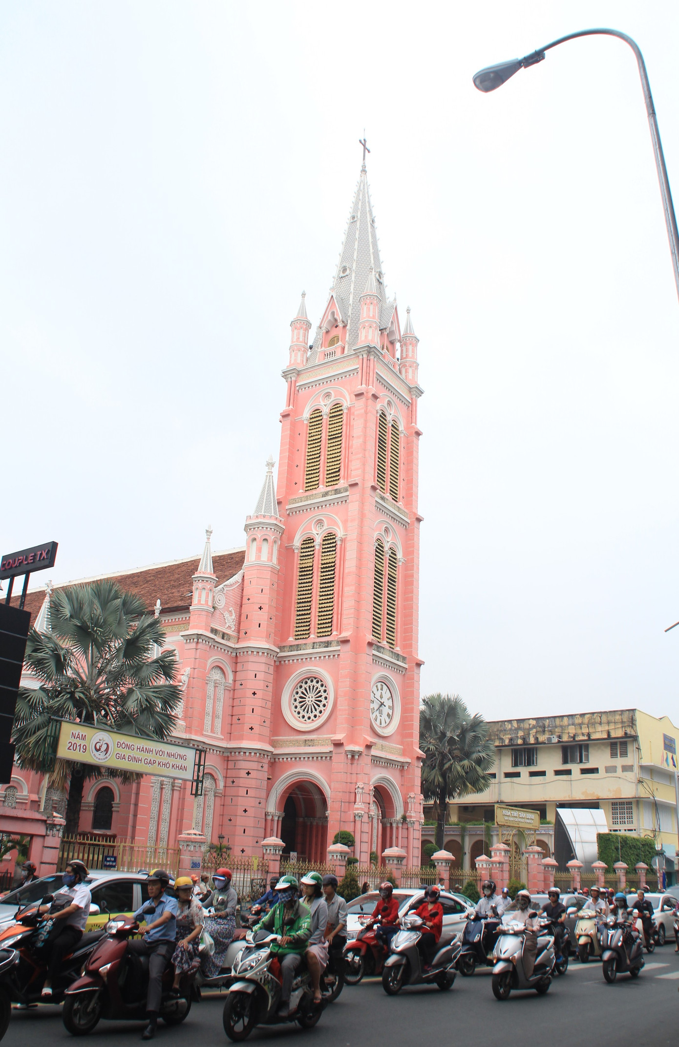 Nhà thờ Tân Định là công trình kiến trúc độc đáo gây ấn tượng với nhiều du khách trong và ngoài nước với lối kiến trúc hài hòa giữa phong cách Gothic, Baroque, Roman cùng tông màu hồng chủ đạo.