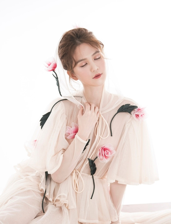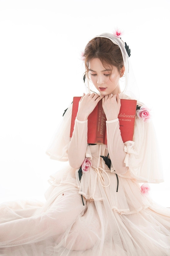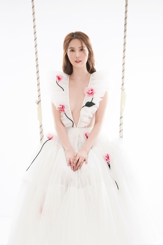 Mới đây nhất, gà cưng của Khắc Tiệp đã thực hiện bộ ảnh theo ý tưởng về một nàng công chúa dạo chơi giữa vườn hoa hồng với váy voan thân phồng của nhà thiết kế Nguyễn Minh Công.