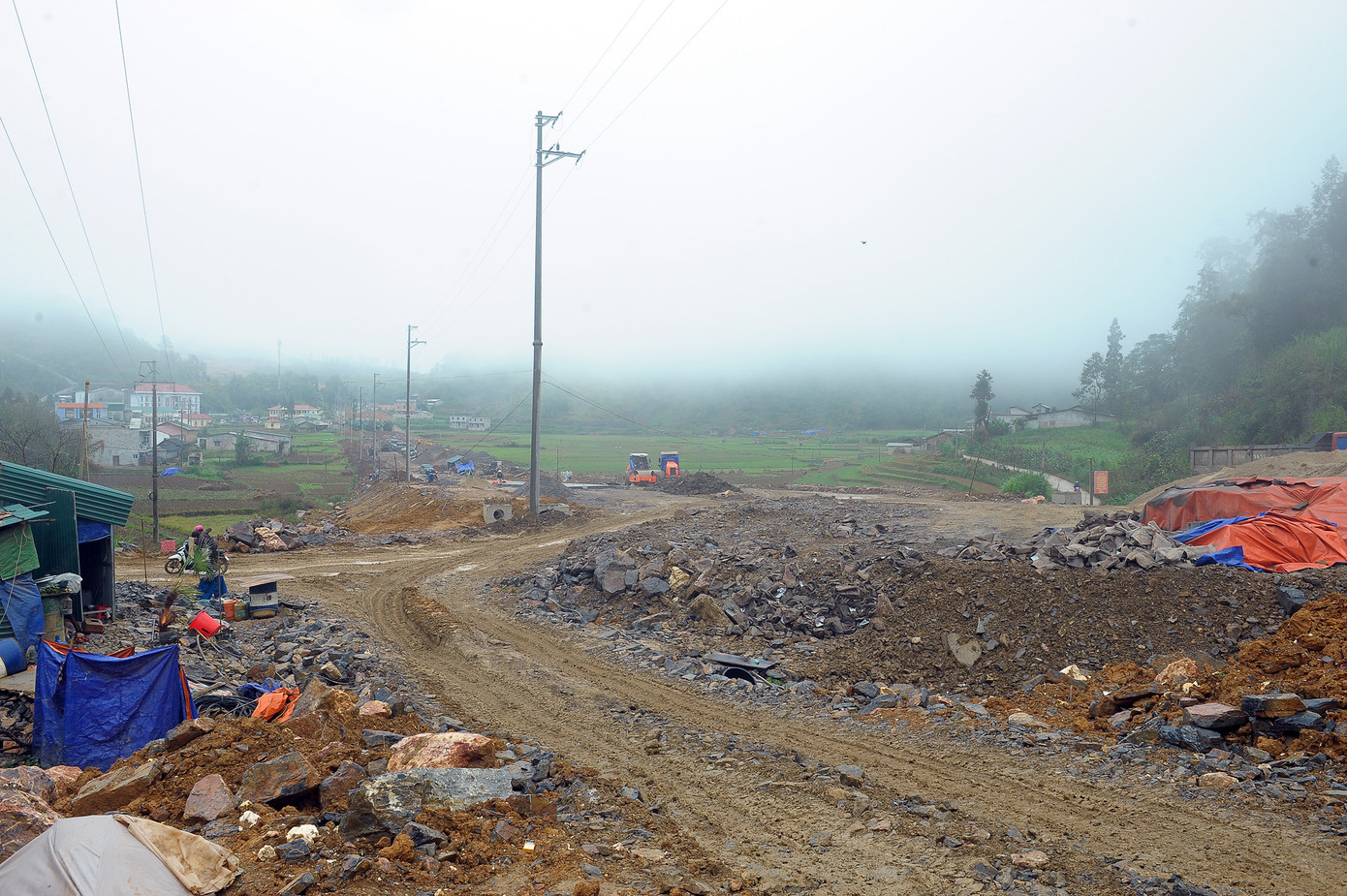 Đang nói đến cánh đồng xôi ruộng mật Thèn Pả bị xé toang bởi đại lộ dẫn vào khu tâm linh. Rất khó hình dung chất liệu nhựa bê tông rộng 33 mét dài 1.700 mét thườn thượt xuyên qua trong tương lai gần. Nhưng nhỡn tiền là khung cảnh nham nhở tanh bành ngay dưới chân cột cờ Lũng Cú cùng sự biến đổi đảo lộn một trung tâm xã Lũng Cú thanh bình mới đây.