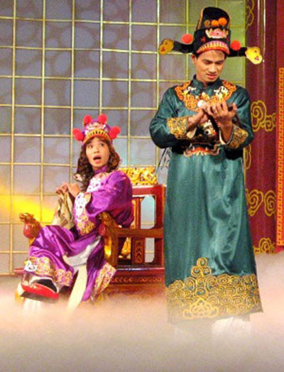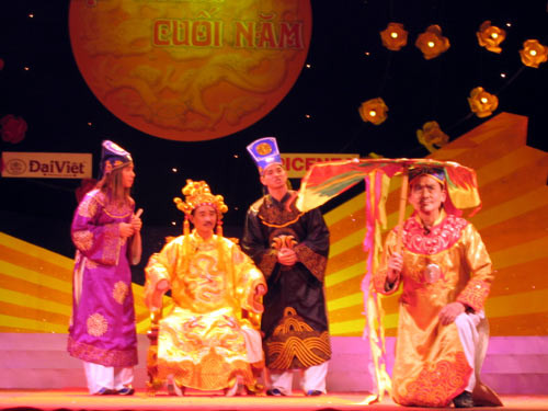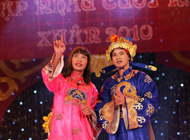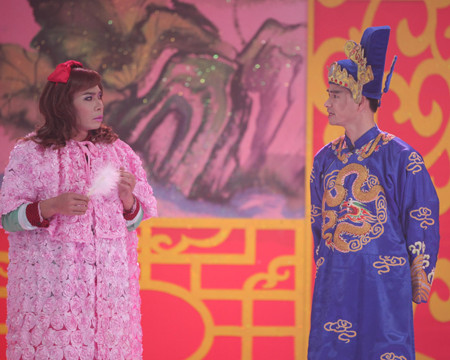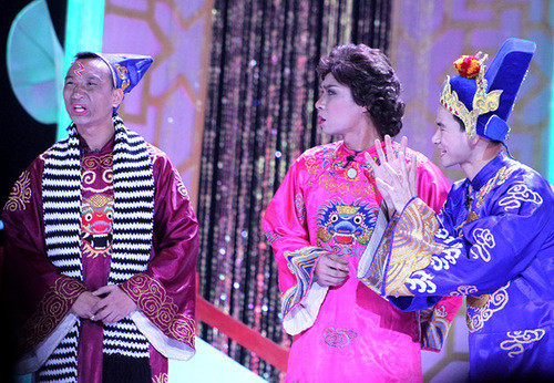 Táo Quân 2012 có lẽ là lần "cô Đẩu" trông già nhất với mái tóc xoăn ngắn theo phong cách các bà cô Hàn Quốc.