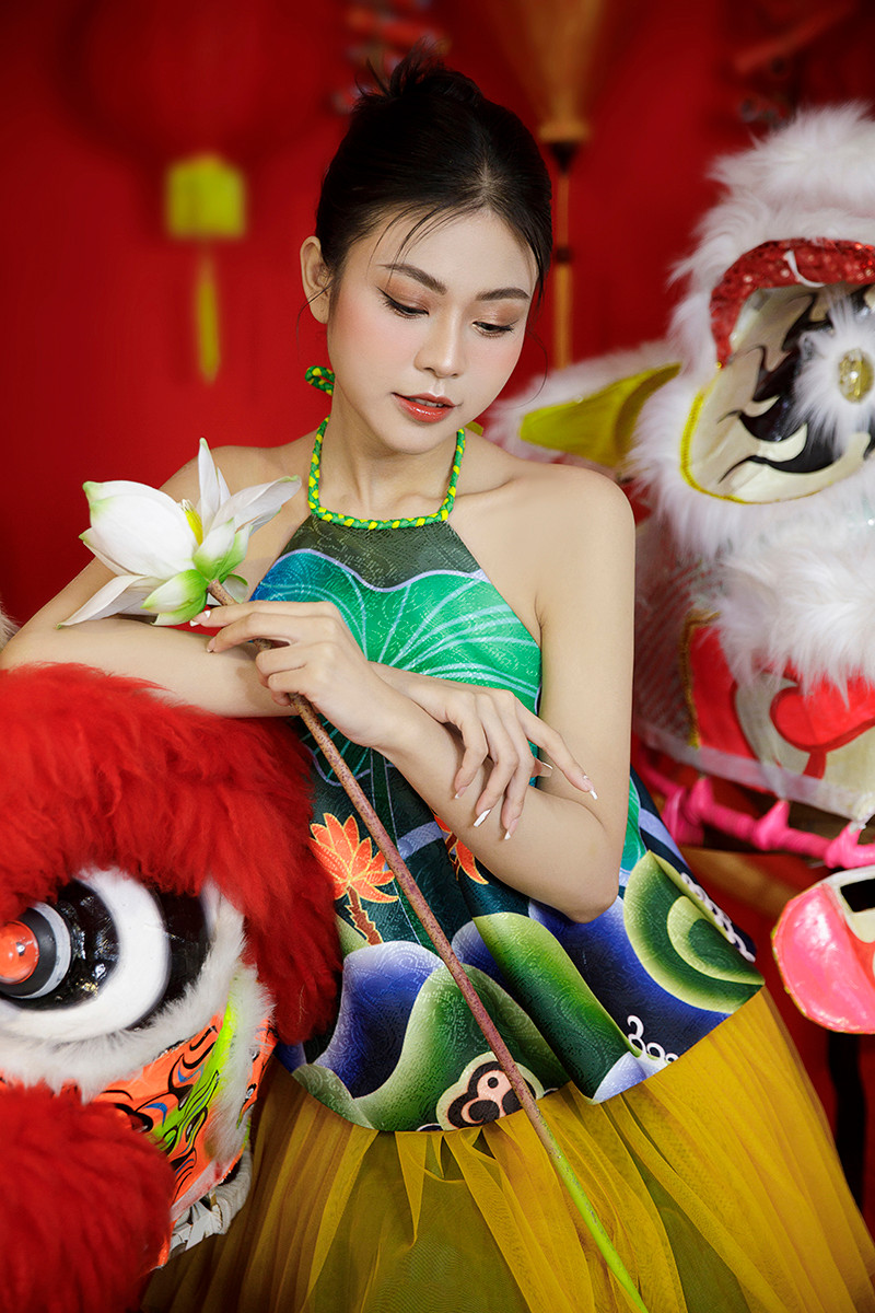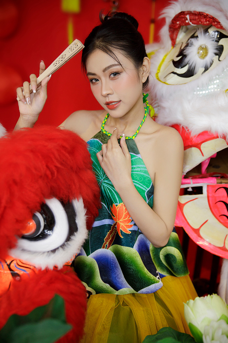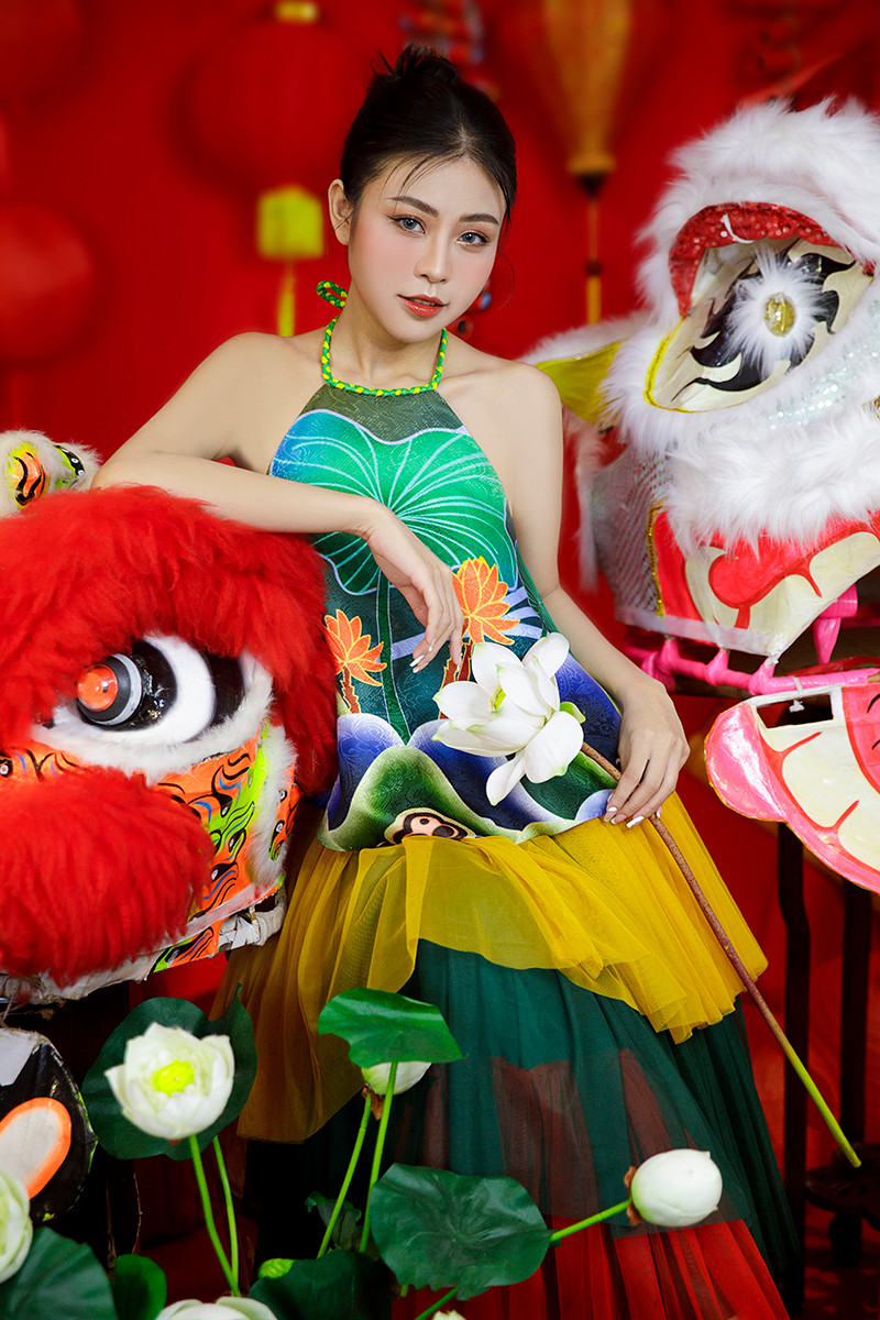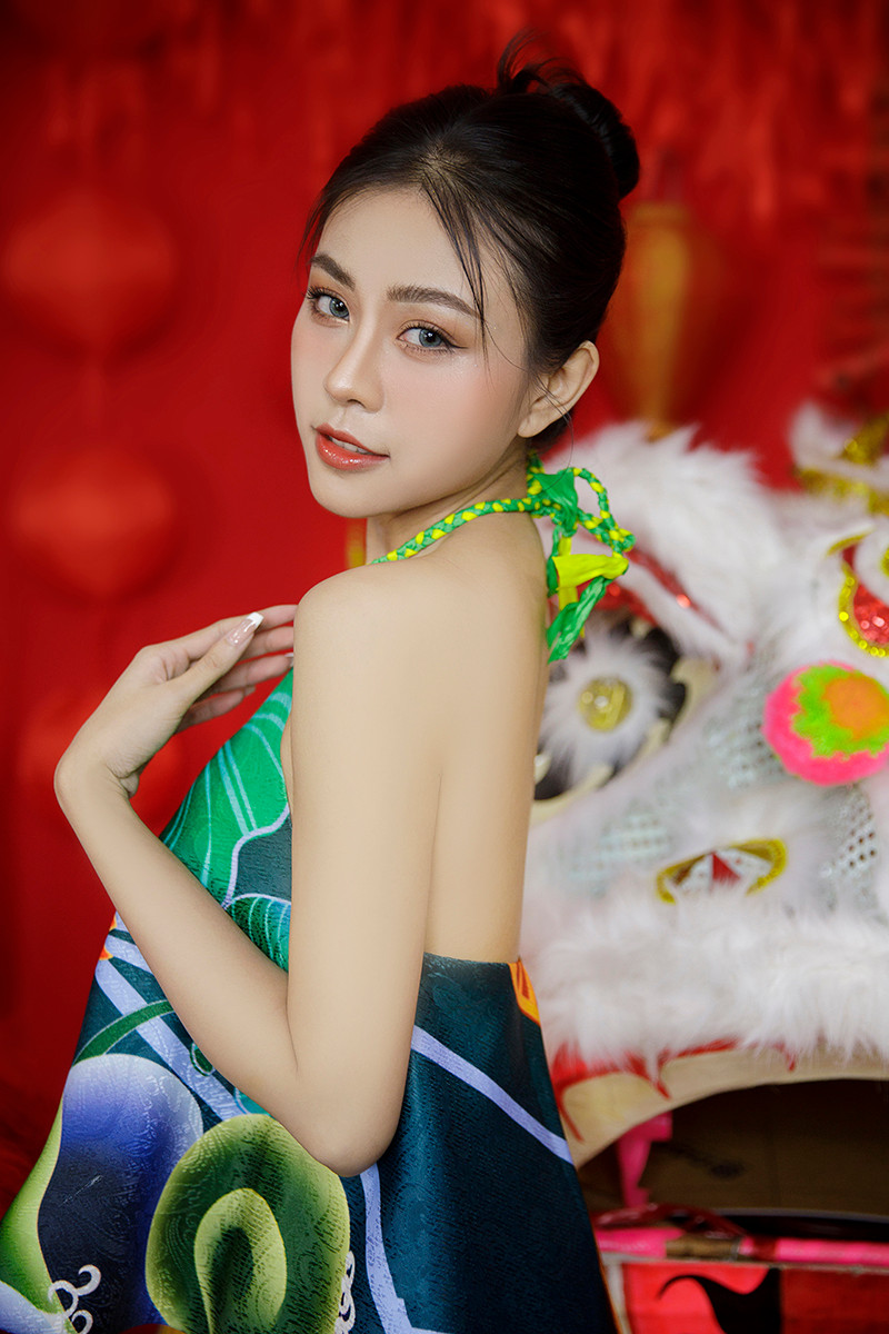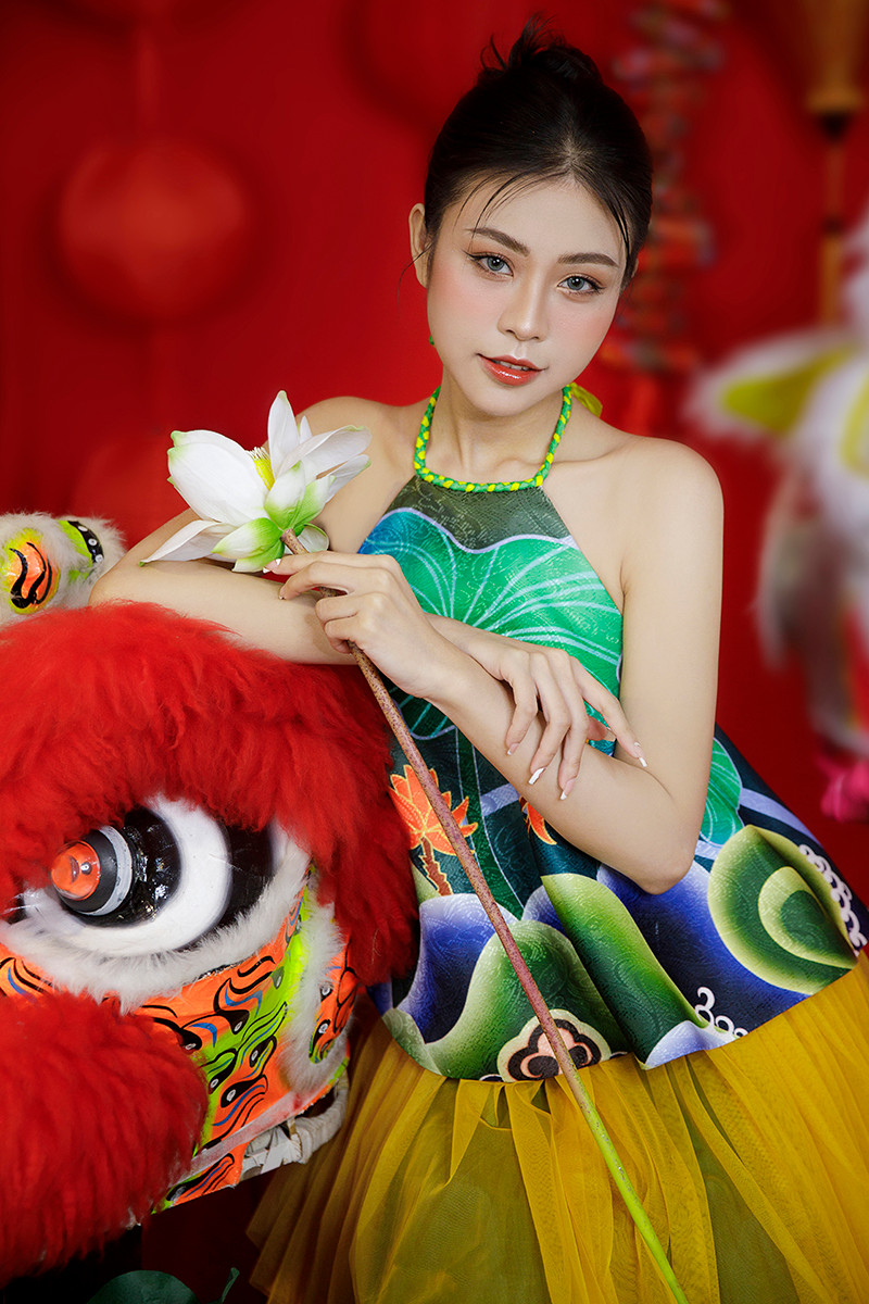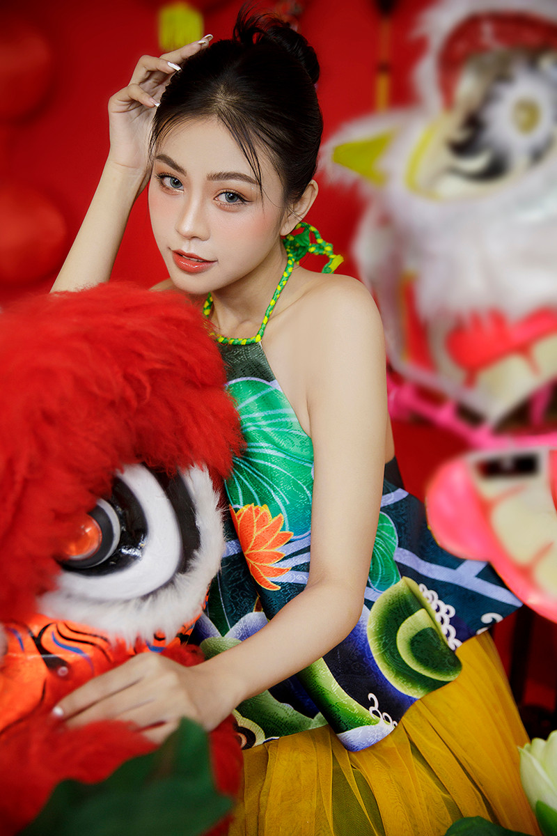 Nguyễn Hoàng Phương Uyên (sinh năm 2001) đang là sinh viên của trường Đại học Tài chính – Marketing. Bên cạnh công việc học, Phương Uyên còn là người mẫu ảnh, MC, đồng thời là một nữ Graphic Designer và Digital Artist. Lấy cảm hứng từ những gam màu sắc nổi bật, cùng nét văn hóa đặc sắc của ngày Tết Việt Nam, Phương Uyên đã đón chào năm Quý Mão 2023 với bộ ảnh rực rỡ đầy màu sắc.