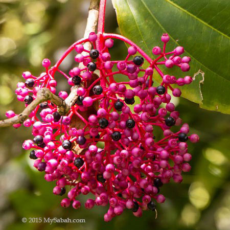 Vào thời tiết ấm áp, cây bắt đầu ra hoa màu hồng khá đẹp, sau khoảng 1 tháng sẽ cho chùm quả mọng, màu sắc sặc sỡ.