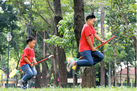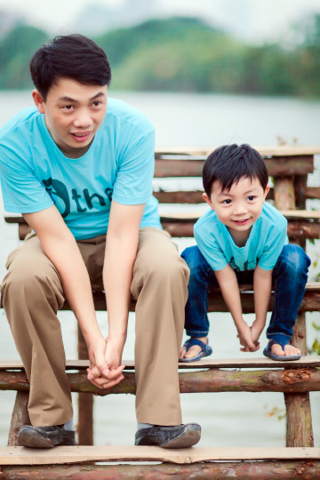 Lời bình: Chẳng cần có bố đi bên cạnh, cứ ai nhìn thấy con là thốt lên ngay "Ôi thằng Hiếu con kìa". Những lúc ấy, bố vừa tự hào, vừa sung sướng khi có một bản thu nhỏ của chính mình. Những giây phút vui đùa bên con, con là chỉ huy nên bố cứ phải làm những hành động