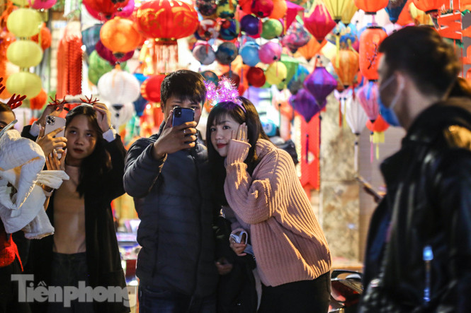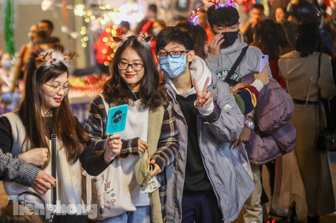 Tại phố Hàng Mã (quận Hoàn Kiếm, Hà Nội), nhiều bạn trẻ đã đến đây từ sớm để có thể chọn những không gian cho bức hình lung linh cho đêm Giáng sinh hôm nay.