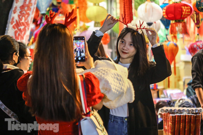 TPO - Nhiều bạn trẻ đã chọn phố Hàng Mã (quận Hoàn Kiếm, Hà Nội) để đón Giáng sinh năm nay. Tại đây, nhiều "bóng hồng" xinh đẹp xuất hiện với những bộ cánh lung linh nhất.