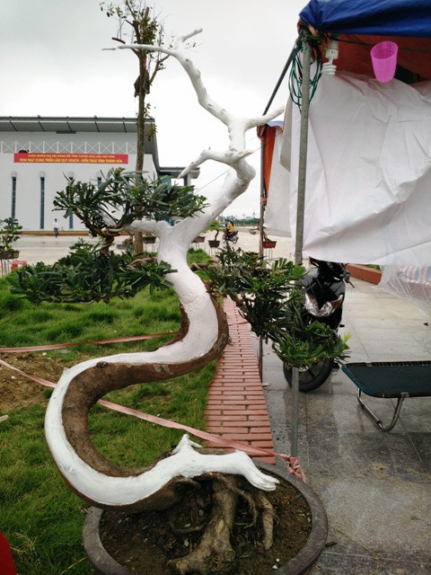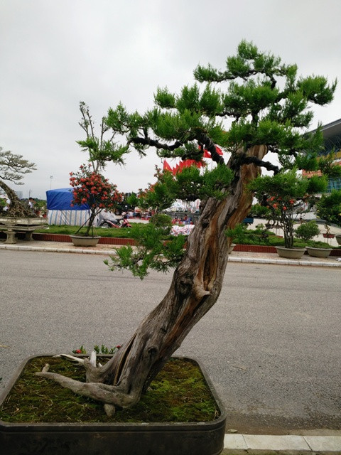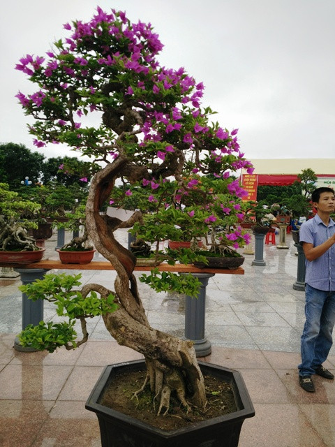 Những cây bonsai có dáng độc, đâm chồi nảy lộc, hoa sum xuê được trưng bày và rao bán. Anh Nguyễn Hữu Công, một nghệ nhân chuyên tạo dáng cây cảnh chia sẻ: “Nhìn những cây bonsai nhỏ nhưng lại có giá trị rất lớn vì phải mất rất nhiều công sức. Những cây này ngoài việc vất vả tìm kiếm những gốc, thân cây có dáng quái, độc, lạ về trồng thì chủ nhân của nó phải mất cả chục năm uốn nắn, tạo cho cây một “thế độc” để không có cây nào giống được. Một cây bonsai có thế độc giống như một tác phẩm nghệ thuật vô giá vậy, vì thế mà mỗi cây bonsai luôn có giá trên trời”.