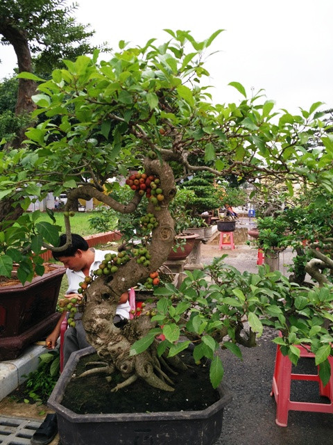 Theo một người bán cây cảnh ở đây, những cây bonsai có dáng độc, đẹp, quái lạ, dị… tuy nhỏ nhưng được chủ nhân dày công vun trồng, uốn nắm, phải mất cả chục năm. Chưa kể đến công chăm sóc, phòng trừ sâu bệnh, chăm sóc cho cây ra hoa quả, quanh năm tốt tươi.
