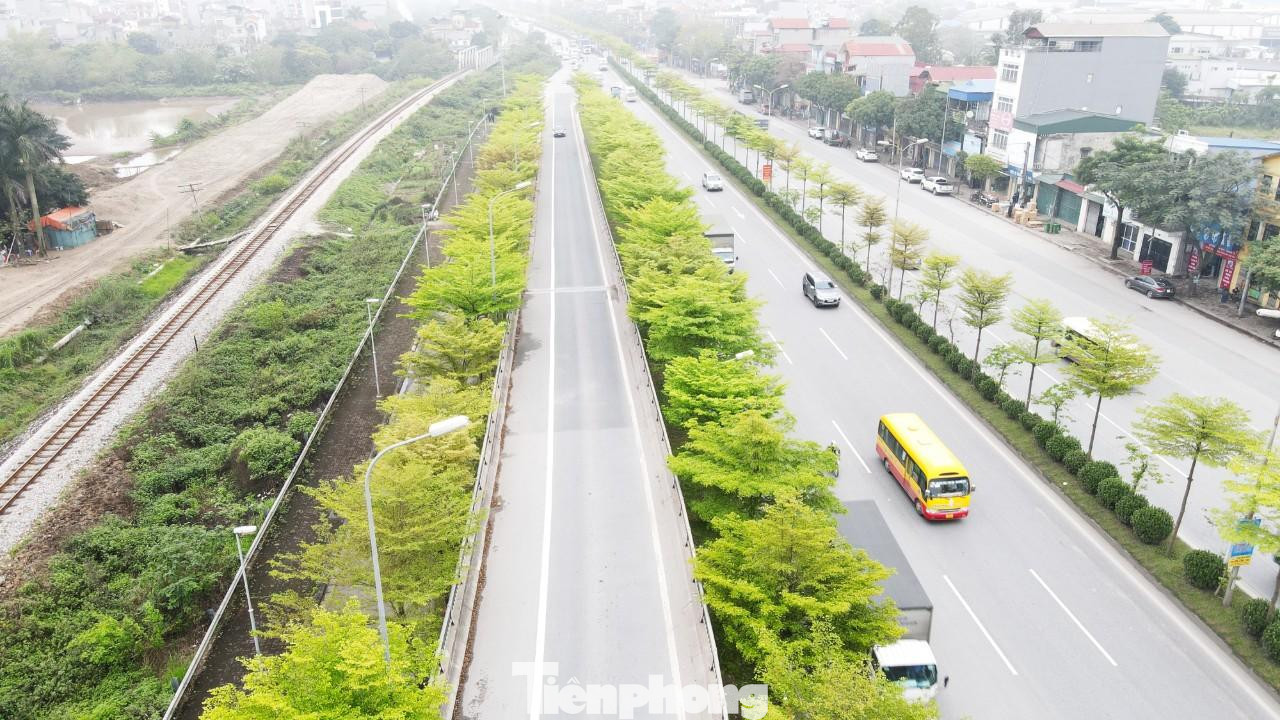 | Thời gian qua, tại khu vực nút giao quốc lộ 5 với lối lên cao tốc Hà Nội - Bắc Giang, hàng cây bàng lá nhỏ đồng loạt "thay áo mới" với màu xanh mướt bắt mắt. |