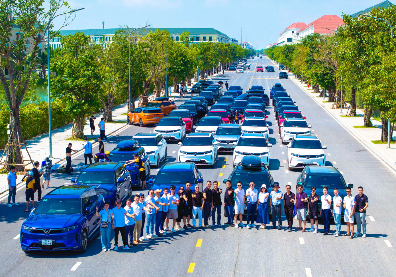 Từ trước đó, lời kêu gọi tham gia buổi offline hoành tráng này đã được lan tỏa trong cộng đồng chủ xe VF 9 và nhận được sự hưởng ứng của hàng trăm người dùng. Đúng hẹn, cuối tháng 9, hàng trăm chủ xe đã cùng nhau tập hợp về Vinhomes Ocean Park 2 để chuẩn bị màn xếp chữ đặc biệt và thực hiện hành trình tới Ninh Bình.