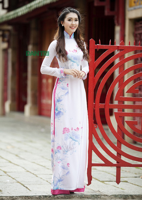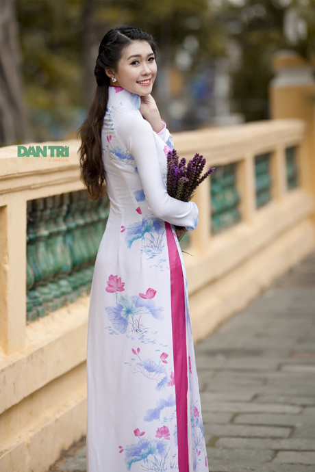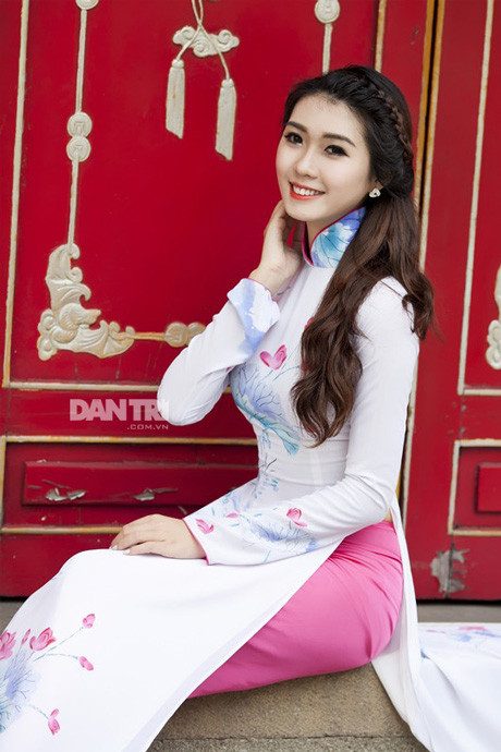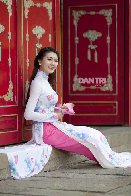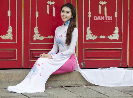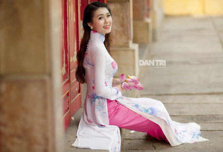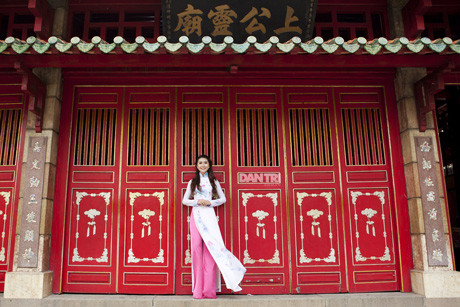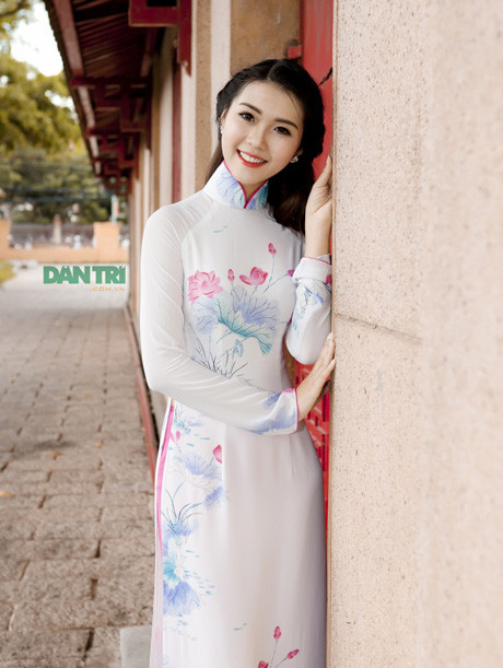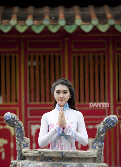 Từng gây ấn tượng với bộ đồng phục trường HV Hàng không, cô nữ sinh sở hữu thành tích học tập “khủng” Tường Linh cũng rất thu hút trong chiếc áo dài duyên dáng trong không gian tĩch mịch của ngôi chùa.