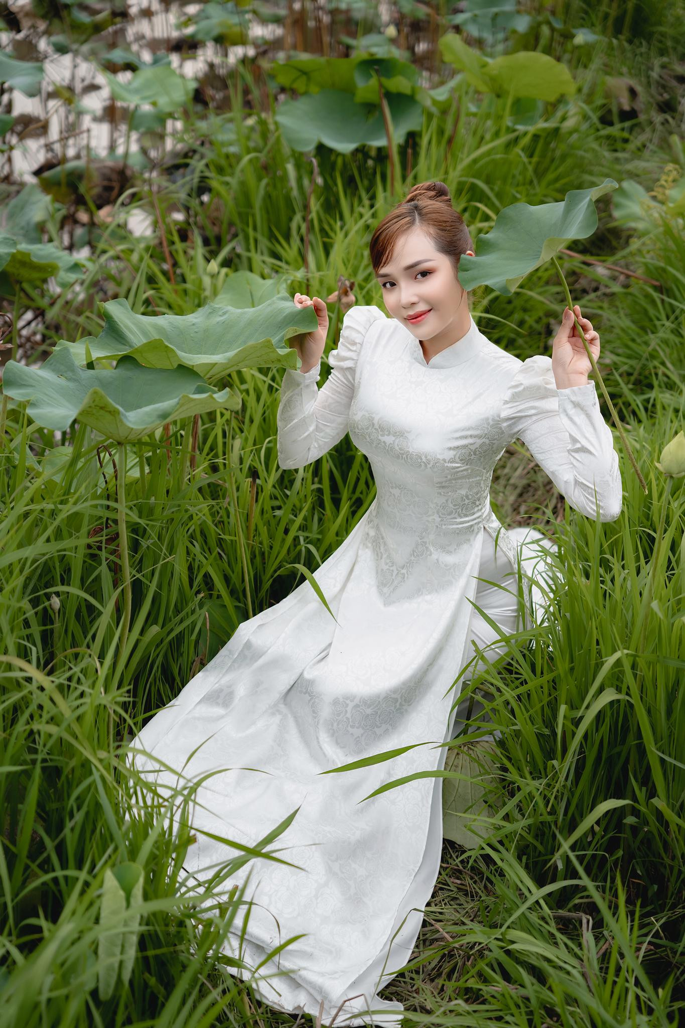 | Thả dáng bên hồ sen cùng áo yếm, áo dài, nét duyên dáng của người con gái Việt được nhân lên gấp bội (Ảnh: Facebook Nguyet Anh). |