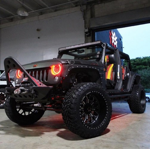 Trong khi đó, phần đầu chiếc Jeep đã được độ đèn lại để giúp nó nổi bật trong đêm.
