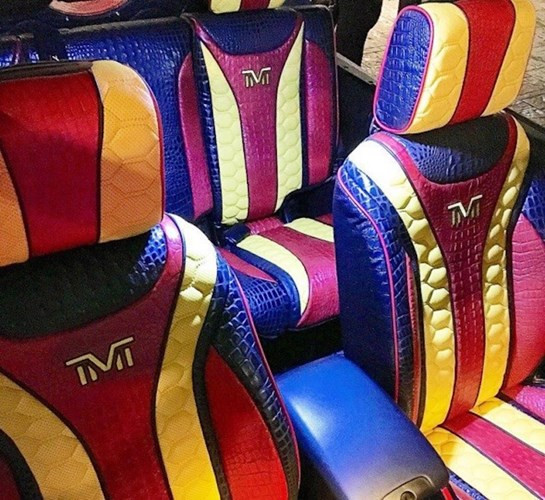 Toàn bộ những chiếc ghế của xe đã được bọc bằng da cá sấu thật nhuộm màu.