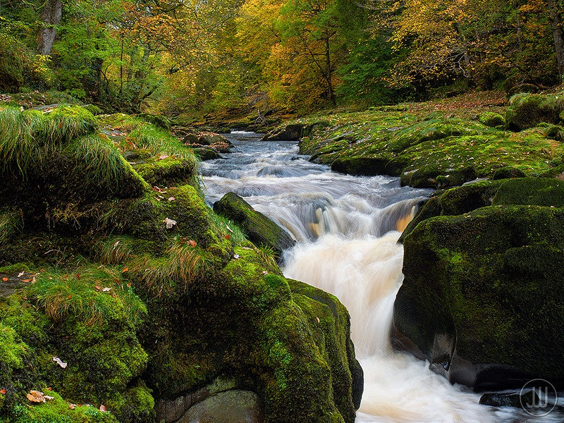 Phong cảnh thơ mộng với đá rêu phong, nước chảy róc rách, nhẹ nhàng, mọi người đua nhau đi trên đá, nhảy qua suối dù điều này được cảnh báo không nên