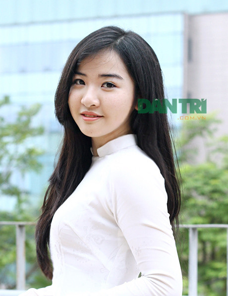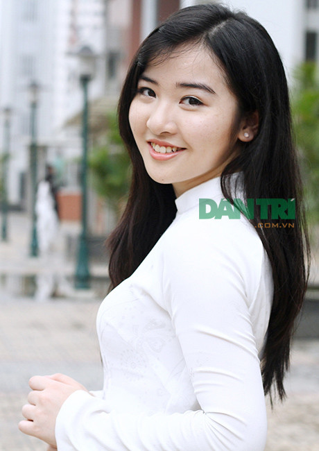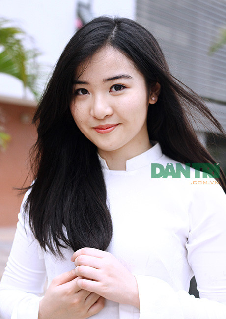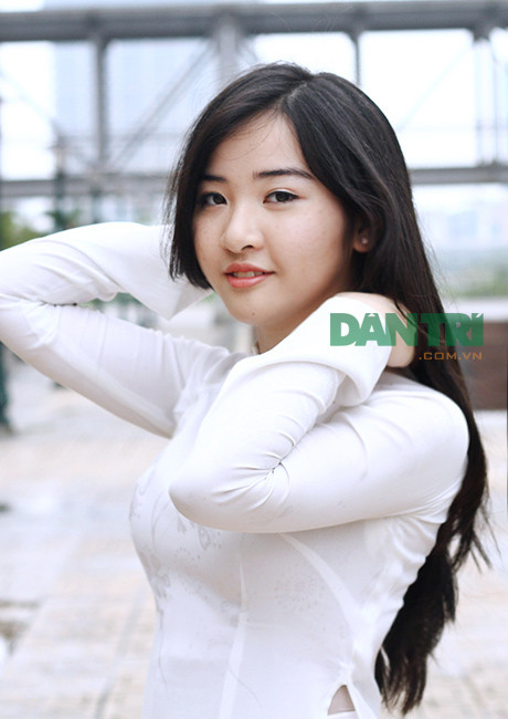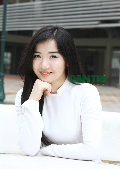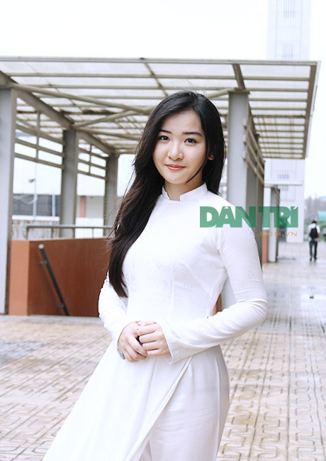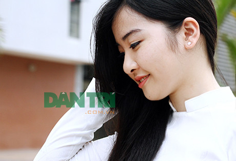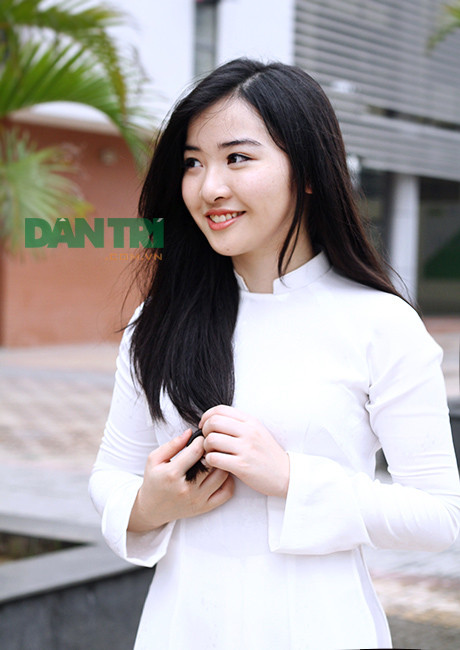 Cô bạn Trần Ngọc Diệp nổi bật trong một sự kiện ngoại khoá dành cho teen lớp 12 trường chuyên Hà Nội - Amsterdam bằng vẻ đẹp mộc mạc, tinh khôi trong tà áo dài trắng.