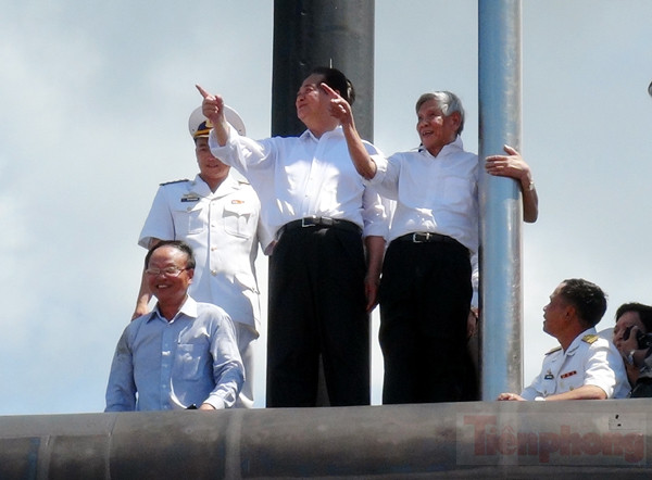 Thủ tướng Nguyễn Tấn Dũng cùng các vị lãnh đạo Quân đội và Hải quân trên tàu ngầm HQ183 - Thành phố Hồ Chí Minh.