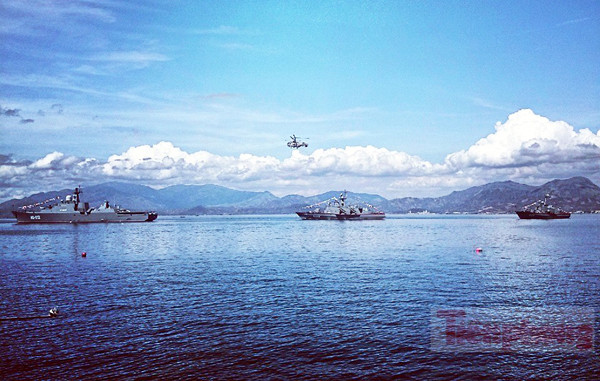 Tàu ngầm HQ182 - Hà Nội, phía xa là tàu khu trục HQ012 – Lý Thái Tổ.
