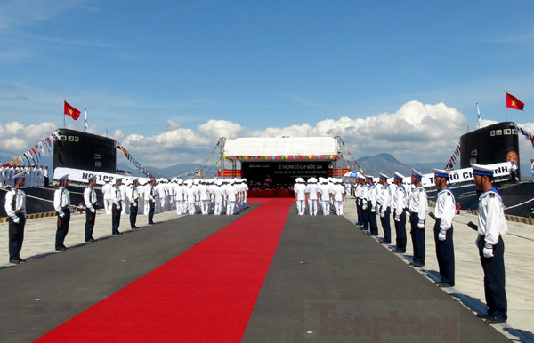 Chào Quốc kỳ trên tàu ngầm HQ182 - Hà Nội.