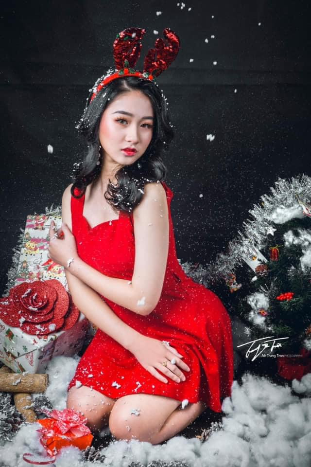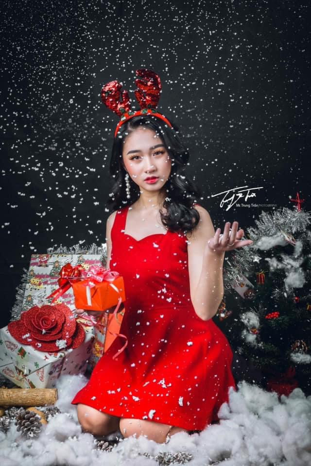 Dịp Noel, thiên thần 2K4 lại hóa thân thành cô gái ngập tràn không khí noel với mũ len, váy đỏ, cùng tuyết rơi.
