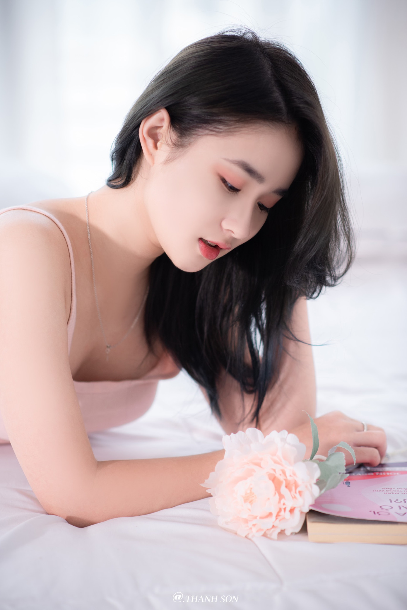 Lối trang điểm của Thùy Dung cũng khá đa dạng, phù hợp với bối cảnh mà cô nàng đang chụp. Thùy Dung hóa thân thành cô gái đang chìm trong giấc ngủ điệu đà bên cành hoa.