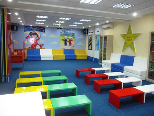 Bàn ghế cũng được khéo léo kết hợp màu sắc tạo nên một không gian tổng hòa tươi sáng.