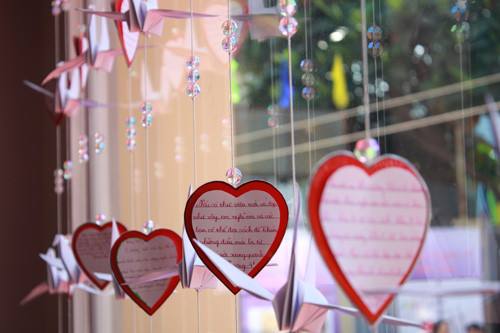 Những chú hạc giấy, những tâm tình của các em học sinh được xếp vào thư viện như một cách để đánh dấu "chủ quyền" của mình trong khu thư viện hiện đại này.