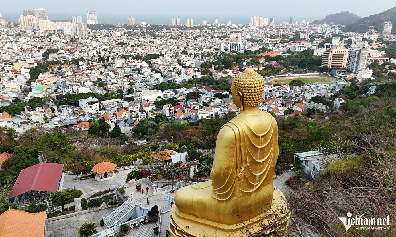 Nhìn từ vị trí bức tượng Phật, du khách dễ dàng chiêm ngưỡng toàn cảnh TP Vũng Tàu.
