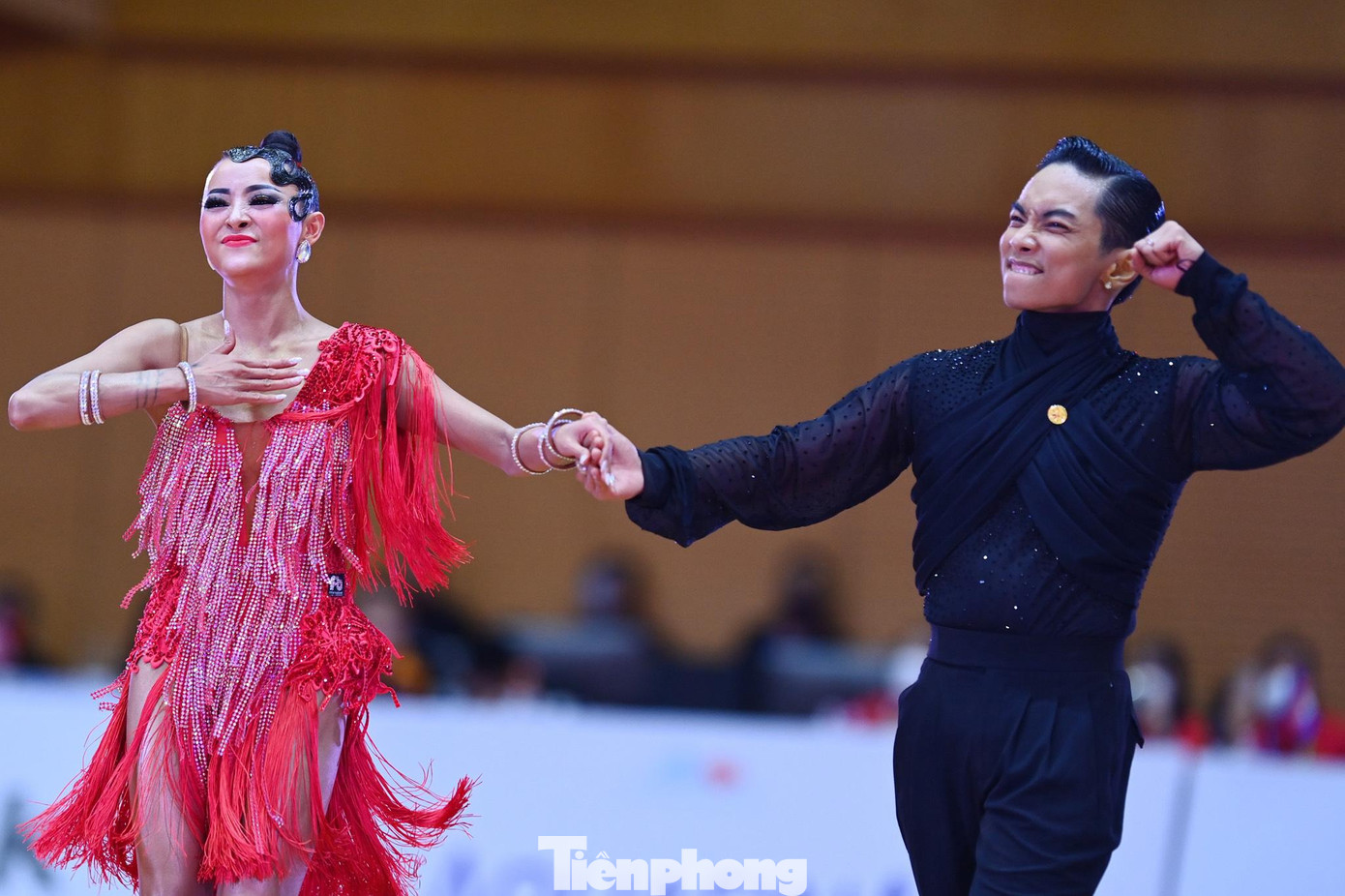 Trong ngày thi đấu hôm nay, môn Khiêu vũ thể thao có 6 nội dung chung kết gồm: Samba, Cha cha cha, Rumba, Paso Doble, jive, 5 điệu La tinh. Trong đó, các vũ công Việt Nam với 2 cặp nhảy: Nguyễn Trung Kiên/Phạm Hồng Anh và Đoàn Minh Trường/Đặng Thu Hương tham gia tranh tài ở tất cả 6 điệu trên và xuất sắc giành huy chương ở cả 6 nội dung tham dự gồm 5 huy chương vàng và 1 huy chương đồng.